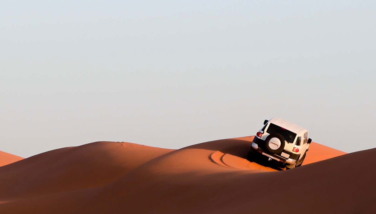 Enjoy a morning in the Abu Dhabi desert by riding the dunes in a 4x4 jeep and on a sandboard.