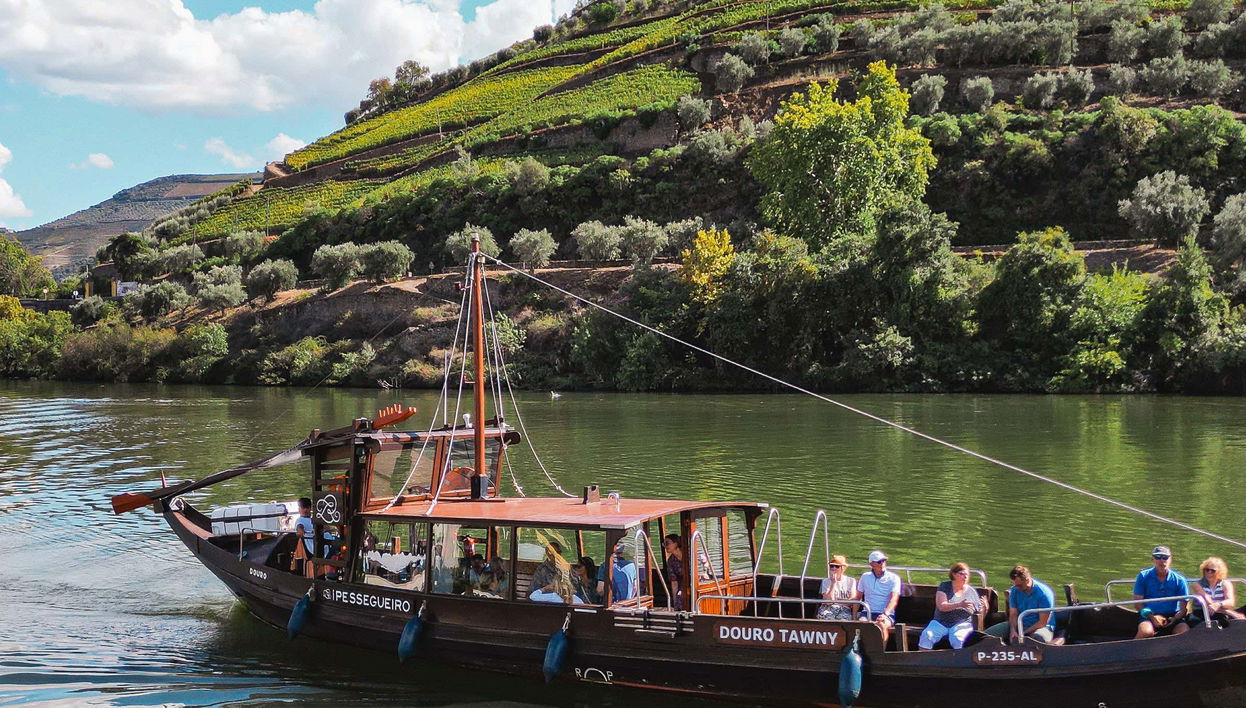 At your chosen time, we'll meet you at the dock on Rua da Praia in Pinhão. We'll welcome you aboard the rabelo, a traditional Portuguese boat that has been used in the villages along the Douro River since the 18th century.