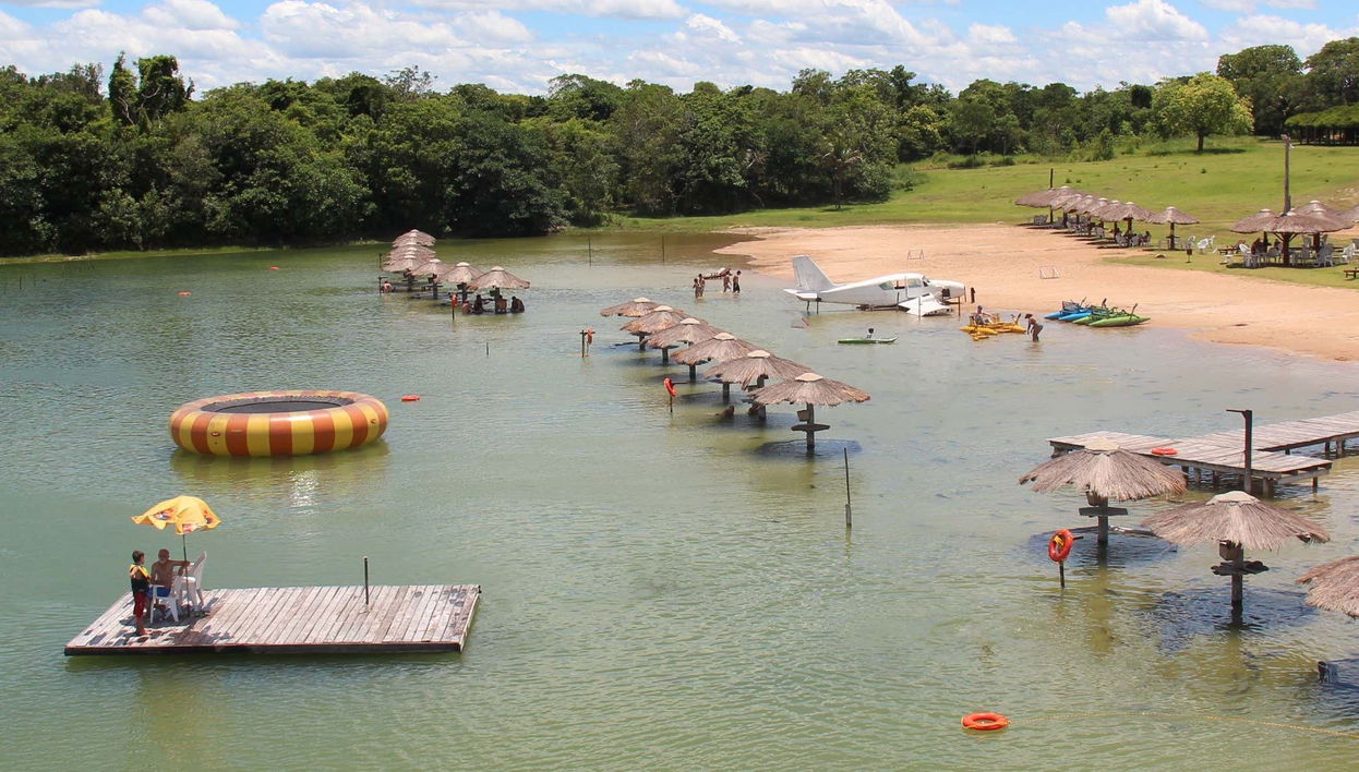 Facilities include sandy areas for beach volleyball, a children's playground, a water slide, the longest zip line in Bonito, and a plane in the water. Praia da Figueira ensures an experience that balances fun and relaxation.