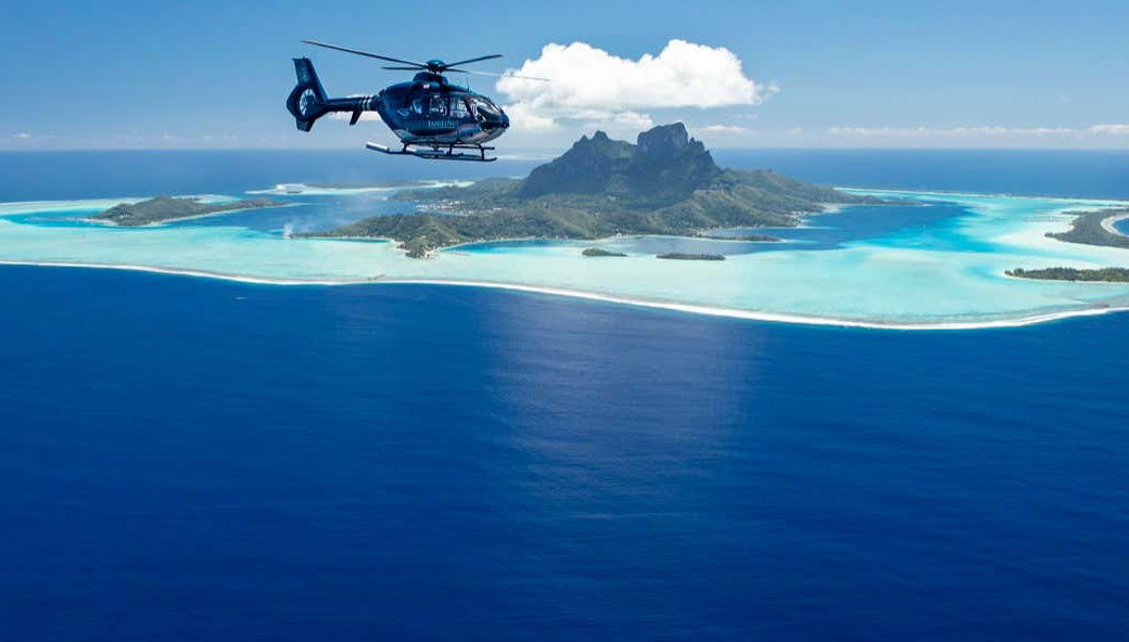 With a bird's eye view, you'll admire the various shades of blue of the lagoon and the lush green surroundings of the iconic Mount Otemanu.
