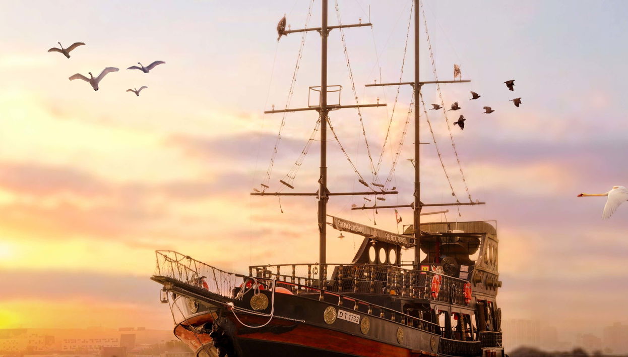 A real pirate ship will be waiting for us at the pier, the boat on which we'll sail the Dubai Canal. We'll settle into our seats and begin the two-hour ride along the banks of the canal.
