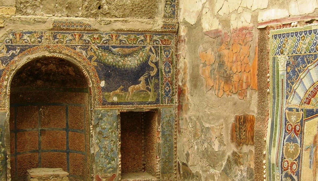 Along the way, we will visit notable sites such as Neptune's House, the Temple of Augustus, the House of the Deer, and the Casa dello Scheletro.