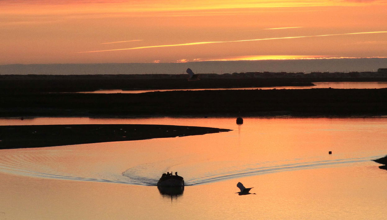 We'll meet at the port of Faro before sunset and board a comfortable catamaran to sail through the calm waters of the Ria Formosa.