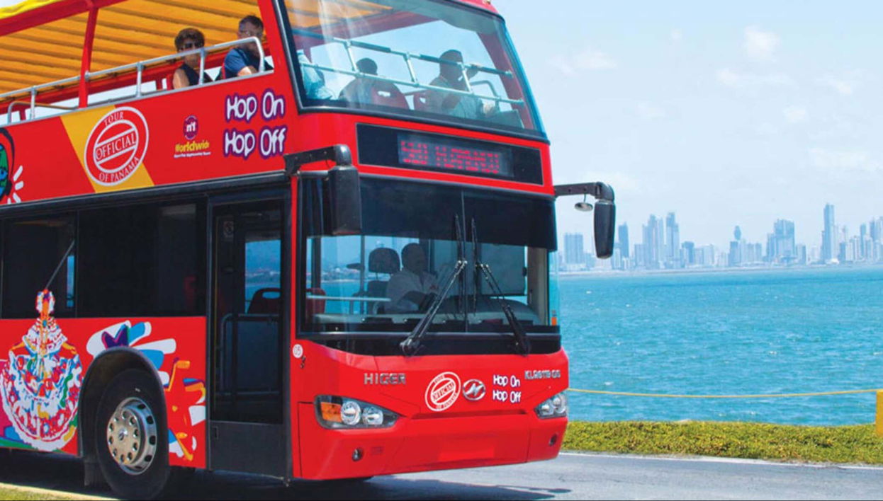 Salite a bordo dell'autobus turistico di Panamá, un modo completo per conoscere la città. Potete salire e scendere quante volte volete.