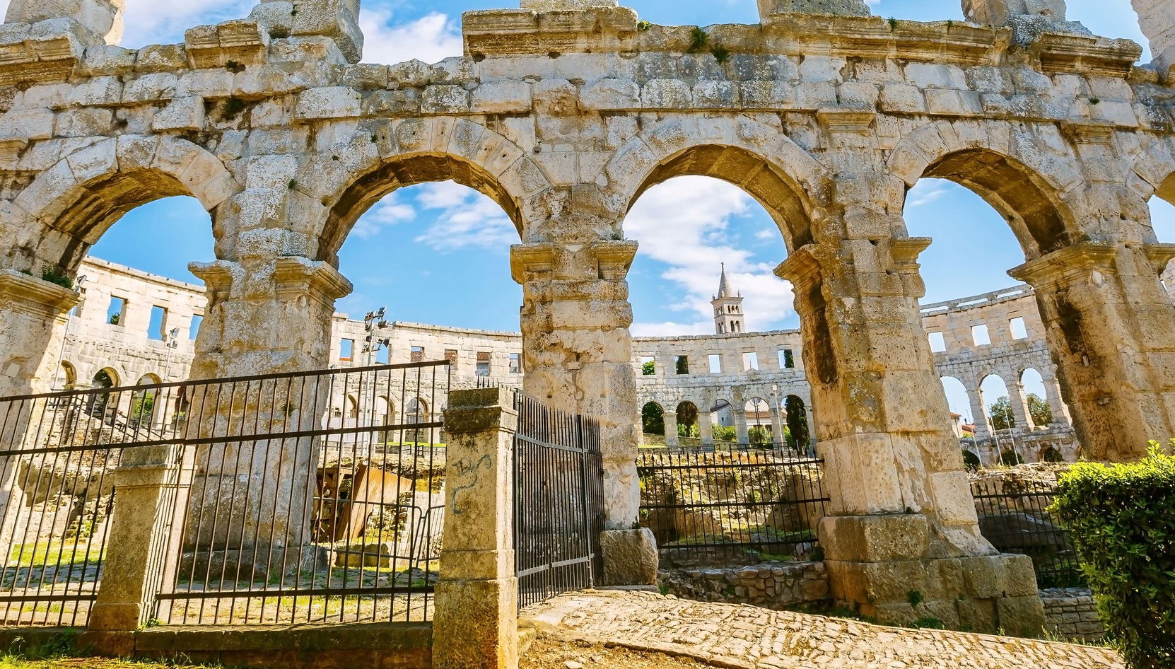 Upon arrival in Pula, the largest town on the Istrian peninsula, we'll take a guided tour to see key sights, starting with the Roman amphitheatre, one of the best-preserved Roman sites in Croatia. We will discuss its history and significance.