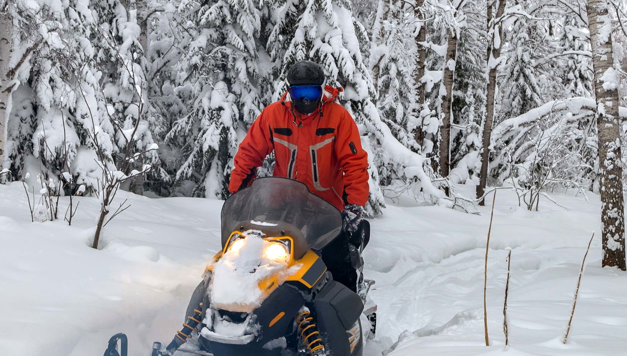 The first activity is riding a snowmobile, allowing us to explore the landscapes of the Arctic Circle.