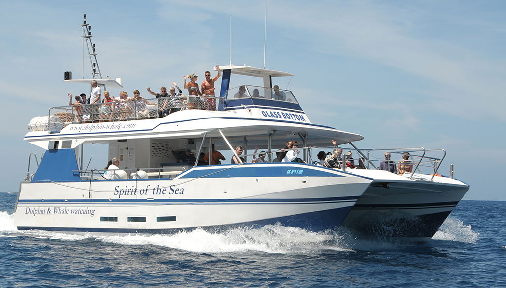 Spirit of the sea is a purpose-built catamaran with a capacity for 97 passengers. It has also been equipped with a large glass bottom in both keels giving you the opportunity to experience life below the ocean wave. As the waters around the Canary Islands are not heavily fished, there is a great diversity of cetaceans including pilot whales and bottlenose dolphins as well as other sea creatures, such as green turtles and flying fish.