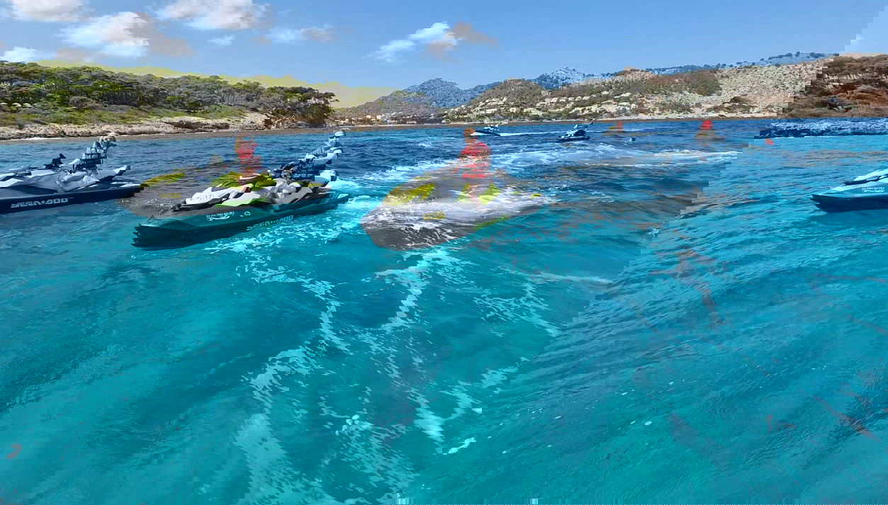 We'll set sail from Cala Bona, driving the jet skis northwards, parallel to the coast. As we travel along the eastern coast of Mallorca, we'll see beaches and caves accessible only by sea.
