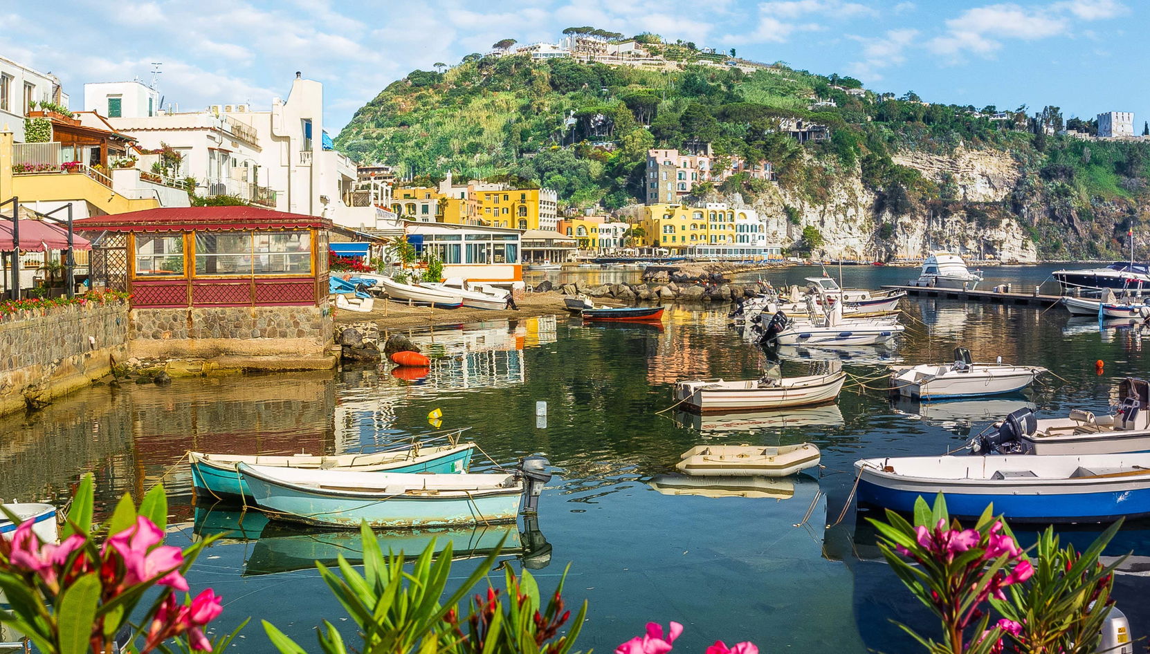 Afterward, we will proceed to Procida, where you can admire the colorful houses, cliffs, and beaches. We will anchor to enjoy a swim and a snack on board. Then, you will disembark at the port of Procida, with one to two hours of free time to explore the town.