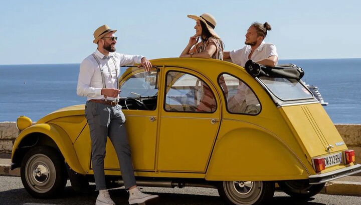 What better way to ride the French Riviera coastline in style with a convertible 2CV Citroën ?. The 2CV Citroen is the ideal trendy car from the 70’s to cruise around in Mediterranean style from Nice to Monte Carlo.
