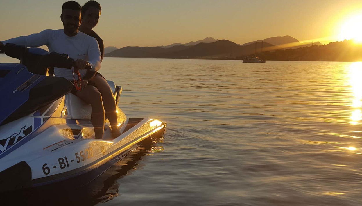 At the scheduled time, we'll meet at Port d'Alcúdia ready to begin our sunset jet ski tour along the north coast of Mallorca. After a brief introductory talk, we'll climb onto the jet skis and set off from Alcúdia beach. We'll enjoy the sea breeze as we blast over the waves at full speed on our two-seater jet skis.