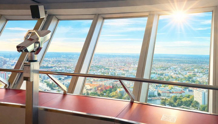 Steigen Sie mit unserem Ticket in Berlins Höhen auf und genießen Sie von unserer Aussichtsplattform, die sich 203 Meter über der Erde befindet, einen atemberaubenden 360-Grad-Panoramablick.