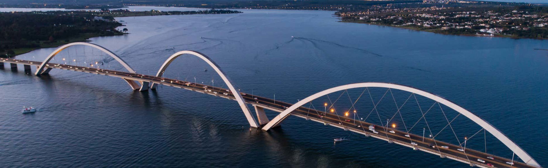 During the tour, we'll see the Alvorada Palace, the official residence of the President of Brazil; the Don Bosco Sanctuary by the lake; and the iconic JK Bridge, a notable landmark of the city. The tour begins at the South Lake Bridge as we pass through the Sector de Clubes Sul (SBS), a popular lakeside neighborhood. We'll then cross the JK Bridge, designed by architect Oscar Niemeyer, and view the Península dos Ministros park, a green area in Brasilia.