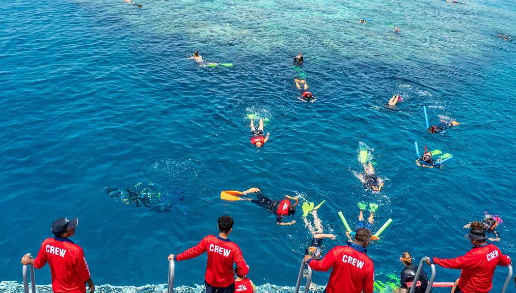 Schnorchler erleben zwei erstklassige Außenriff-Standorte. Fahren Sie direkt nach Moore Reef, wo Sie die Möglichkeit haben, die Unterwasserwelt mit dem mitgelieferten Schnorcheln und Glasbodenbooten zu erkunden oder einen 10-minütigen Rundflug über das Riff zu unternehmen.
