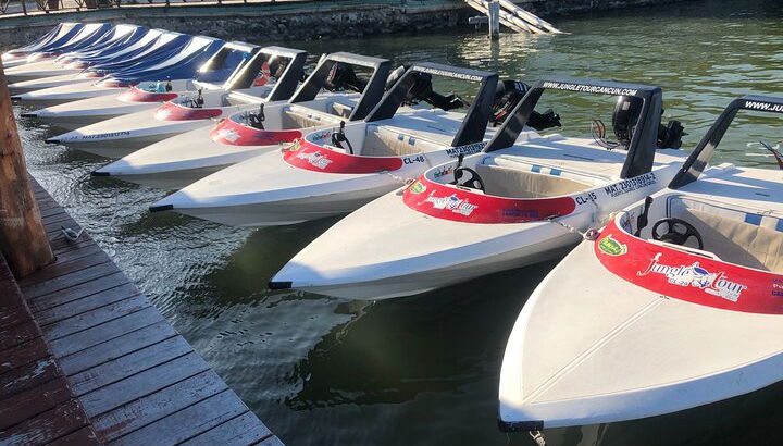Bei Jungle Tour Adventure lernen Sie in einem Zertifikatführer, wie Sie mit Ihrem eigenen Schnellboot navigieren. Sie folgen unseren gut ausgebildeten Reiseleitern, die Ihnen die wunderschönen Mangroven-Kanäle und die Bucht von Punta Nizuc zeigen.