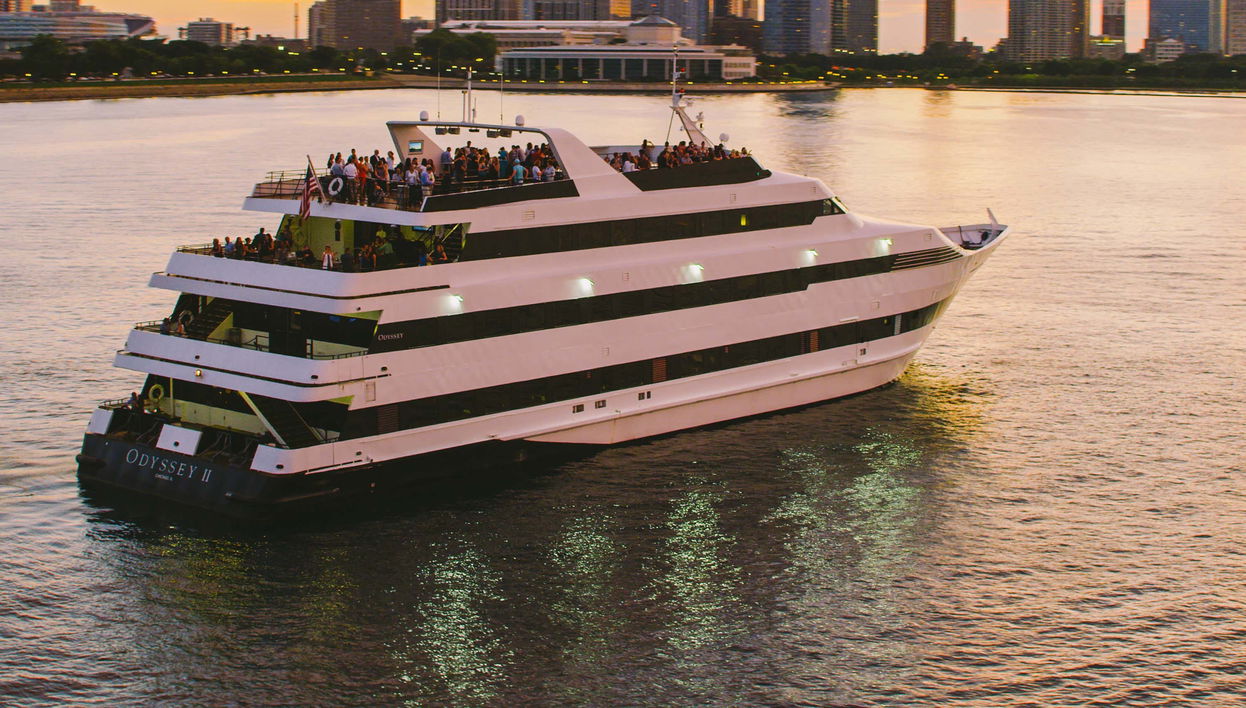 At the appointed time, we'll meet at the Chicago Navy Pier. There, a three-storey boat will be waiting for us and we'll cruise the waters of Lake Michigan at sunset.