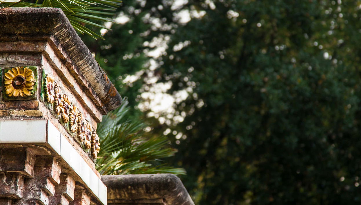 Outside, see man-made grottoes, well-maintained gardens, and a 66-foot (20-meter) high minaret clad in ceramic. Observe the wrought iron found throughout the villa, along with numerous tiles decorated with sunflowers.