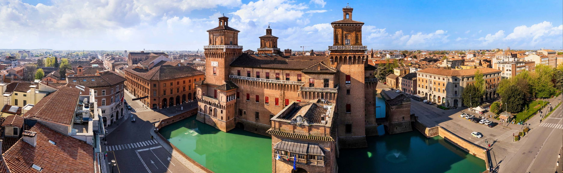 The tour begins in the courtyard of Castello Estense, a symbol of the city that was initially built as a fortress and later became a ducal residence for the Estense family. Visitors will see its terraces, balconies, and impressive towers.
