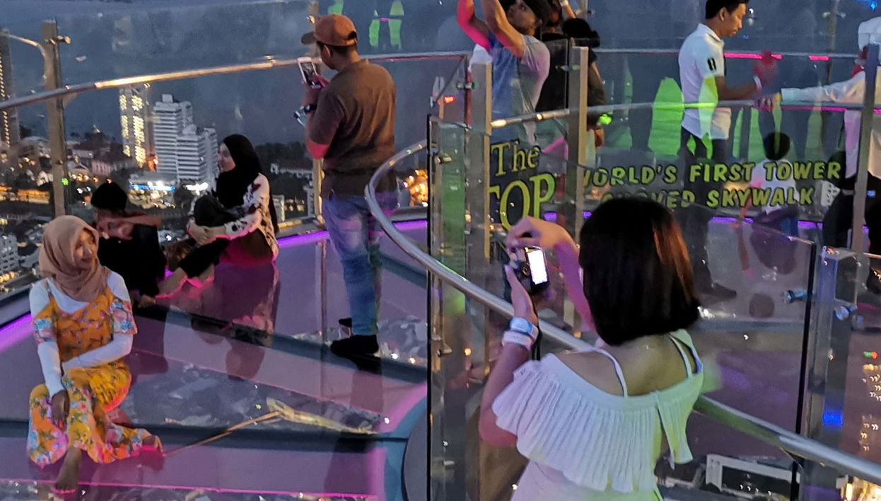 Rainbow Skywalk: An observatory on the 68th floor offering panoramic views and a glass walkway.Observatory Deck: Situated on the 65th floor, it features a glass walkway for views of George Town.SkyBridge: The highest ropes course in the world located on the 68th floor.Jurassic Research Centre: Features over 200 life-sized animatronic dinosaurs.Top Boutique Aquarium: An aquarium showcasing marine life and conservation education.