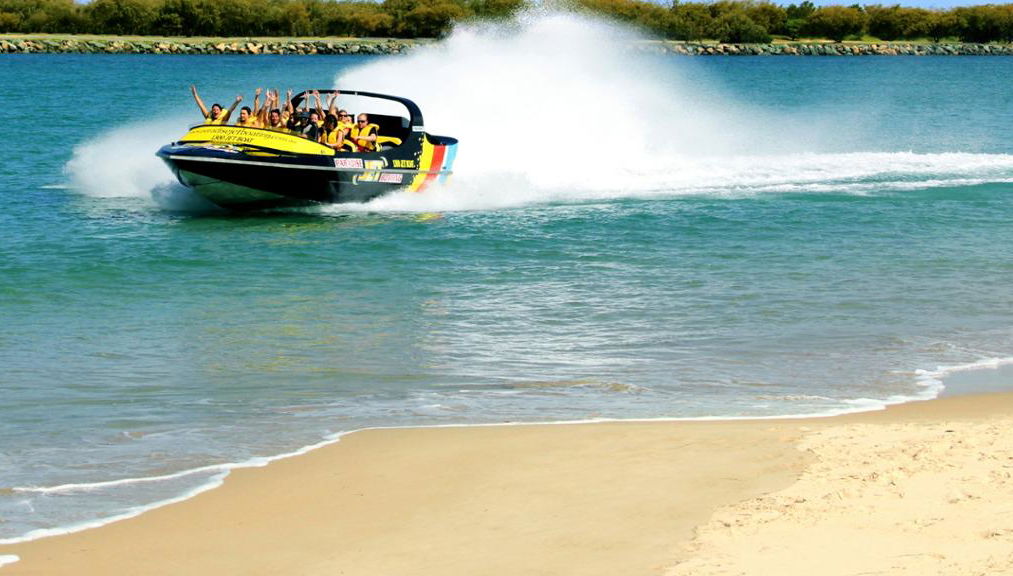 Erleben Sie Jetboot-Drehungen und andere aufregende Manöver sowie Sightseeing durch den wunderschönen südlichen Broadwater und Wavebreak Island.