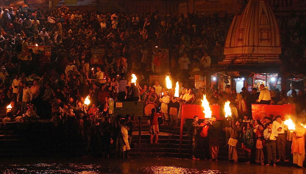 Erleben Sie die Aarti-Zeremonie bei Sonnenuntergang am Flussufer. Tauchen Sie ein in die spirituelle Welt uralter Rituale, die eindringlichen Gesänge, die wallenden Flammen und spüren Sie sogar das heilige Wasser, das Ihnen zu Füßen steht, wenn Sie an der Zeremonie teilnehmen.Ein Besuch und die Zeit, die Sie damit verbringen, die Aarti-Zeremonie aus der Nähe zu betrachten, gehört unbedingt auf jede Bucket-List, wenn Sie die Highlights des Ganges entdecken. Mit einer Geschichte von über tausend Jahren ist die Aarti ein sehr verbreitetes Ritual, das jeden Abend an den Flussufern des Ganges in den drei heiligen Städten Haridwar, Rishikesh und Varanasi in Indien durchgeführt wird. Eine Aarti ist ein Andachtsritual, bei dem Feuer als Opfergabe verwendet wird. Es wird in der Regel in Form einer brennenden Lampe hergestellt, und im Falle des Ganges ist es eine kleine Diya mit einer Kerze und Blumen, die den Fluss hinuntertreibt.Die Aarti kann einfach bis extravagant sein, aber immer Flammen oder Licht einschließen. Dieses traditionelle hinduistische religiöse Ritual der Anbetung ist eine hochchoreografierte Zeremonie, die auf einer Bühne von einer Gruppe junger Pandits in Safranroben aufgeführt wird, die Puja-Platten vor sich ausgebreitet haben.Die Zeremonie beginnt mit dem Blasen einer Muschel und wird mit dem Schwingen von Räucherstäbchen und dem Kreisen großer, flammender Lampen fortgesetzt. Die Bewegung dieser Lampen ist genau auf die rhythmischen Gesänge von Hymnen und das Klingen von Zimbeln abgestimmt. Mit Blick auf den Fluss verwenden die hinduistischen Priester Lampen, die im Uhrzeigersinn im Kreis geführt werden, begleitet von Gesängen oder Liedern zur Ehre von Mutter Ganga. Es wird angenommen, dass die Göttin nach Beendigung des Rituals ihren Segen auf jeden Anwesenden regnet. Sprachen Englisch