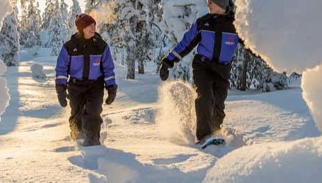 After putting on special thermal clothing, we'll don our snowshoes. Over approximately two hours, we'll navigate the snowy paths of the Sirkka forests and enjoy the Finnish countryside.
