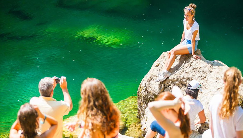 Schwimmen oder Kanu fahren oder einfach nur herumlaufen. Die natürliche Umgebung des Sees wird Sie beeindrucken, während er in jeder Jahreszeit ein anderes Gesicht zeigt. Nach dem Verkosten der exquisiten Sauermilch oder des berühmten Blatter Kuchens machen wir einen Zwischenstopp in Skofja Loka, einer der ältesten slowenischen Städte, machen Sie einen Spaziergang durch diese mittelalterliche und charmante Stadt, die unterhalb der Burg und des Klosters liegt.