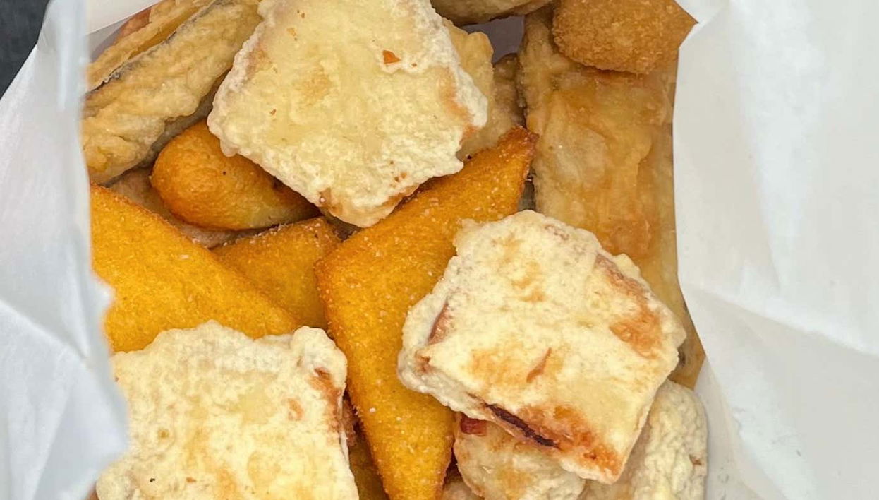 The adventure starts with a glass of Spritz, paired with a charcuterie board and mozzarella. We will also try other specialties such as tarallo, frittatina, and a mix of fried seafood.