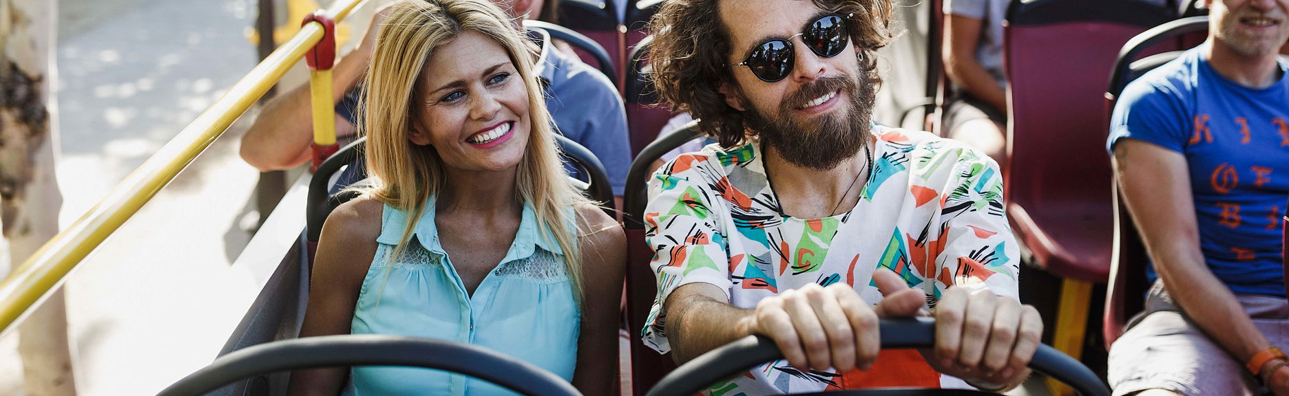 The hop-on, hop-off bus offers a thorough tour of the city's main attractions with recorded commentary in English. From the bus's panoramic roof, you will have unique views of the entire city.