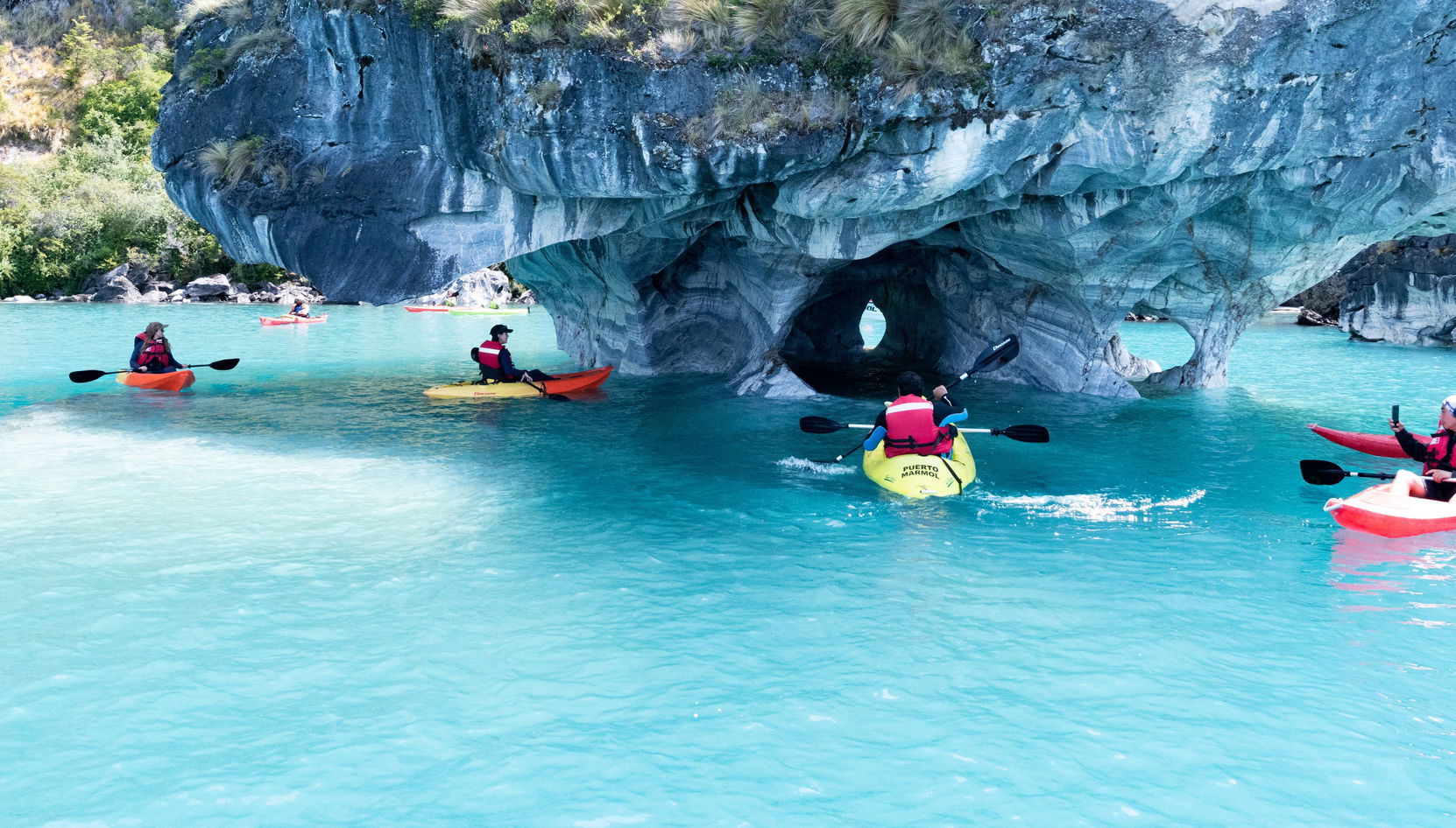 During the tour, we'll paddle next to the famous marble caves of Puerto Tranquilo, which consist of calcium carbonate lake caves within a large nature sanctuary.