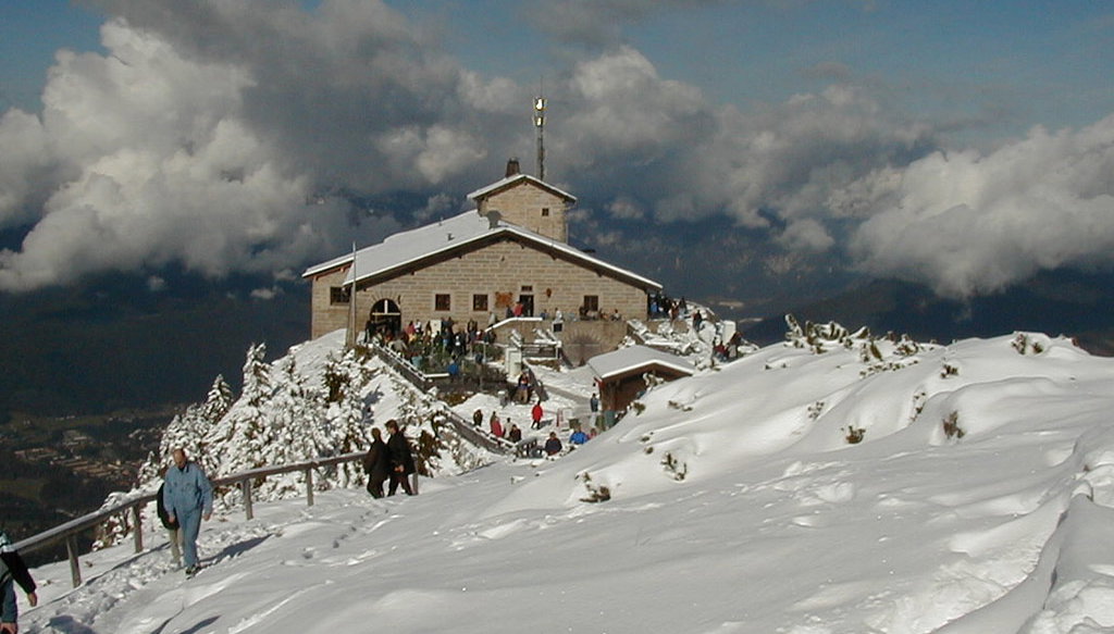 Das Gebäude selbst war ein Projekt von Martin Bormann und wurde Adolf Hitler zu seinem 50. Geburtstag als Teehaus für Diplomaten geschenkt. Es entging den Bombenangriffen im Zweiten Weltkrieg und ist seitdem der Öffentlichkeit als Restaurant und historisches Denkmal zugänglich. Die atemberaubende Aussicht über das Berchtesgadener Land lässt fast den Ursprung des Gebäudes vergessen, aber das Gebäude und die mit Messing ausgekleideten Aufzüge, die Sie durch das Herz des Berges hinauf in das Restaurant bringen, dienen auch als deutliche Mahnung an die Macht des nationalsozialistischen Regimes.