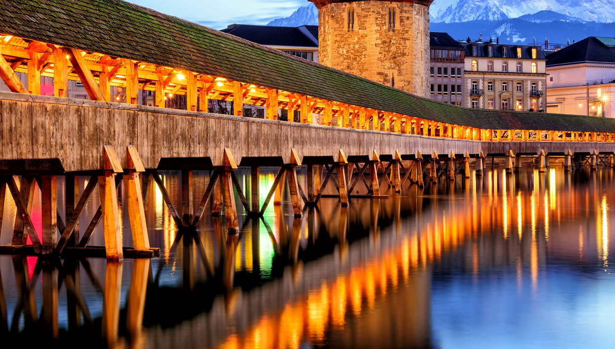 Meet at the Sihlquai bus terminal in Zurich at the indicated time to board the bus to Lucerne. Your guide will point out key monuments, including Chapel Bridge and the Jesuit Church. Upon arrival in Lucerne, you will have free time to explore the city and your guide will suggest places to visit, such as Weinmarkt Square.