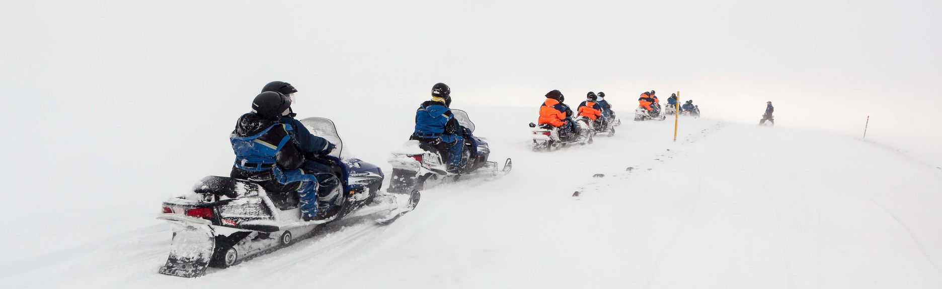 À votre arrivée, vous descendrez du camion pour monter sur une motoneige. Vous vous équiperez du matériel nécessaire, écouterez les consignes du guide et partirez pour une balade en motoneige sur le glacier de Langjökull.