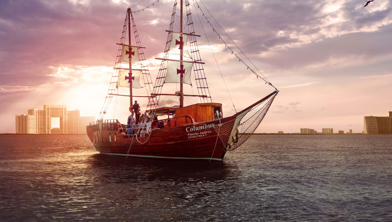 À l'heure convenue, retrouvez-nous au quai de Marina Aquatours, d'où le majestueux galion mettra le cap vers la mer des Caraïbes pendant le coucher de soleil. La côte de Cancún créera une atmosphère idyllique pour une soirée mémorable, avec une gastronomie raffinée, des melodies envoûtantes et un panorama éblouissant illuminé par le coucher du soleil.