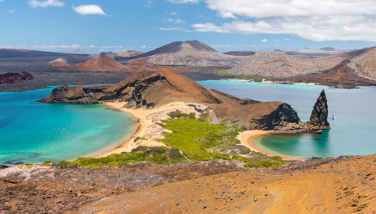 Découvrez les paysages uniques de l'archipel des Galápagos lors de cette excursion sur l'île Bartolomé. Les nuances vibrantes du sol volcanique dessinent un panorama époustouflant. Itinéraire.