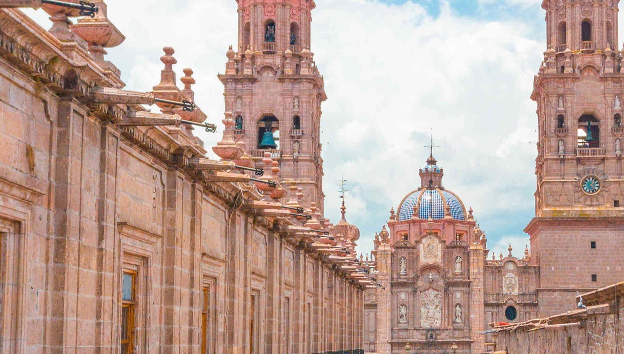 Vous explorerez le centre historique de la ville et ses bâtiments de style baroque en pierre rose, notamment la cathédrale de la Transfiguration du Seigneur de Morelia, symbole de la municipalité.