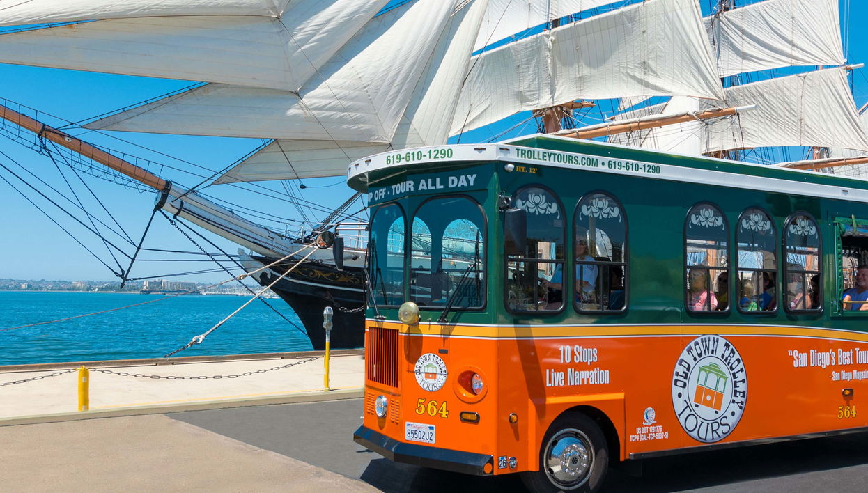O trólebus turístico é ideal para percorrer San Diego. Esse veículo, com aparência de vagão de trem antigo, leva aos lugares icônicos da cidade, como o Museu Marítimo, Balboa Park, o centro histórico e Little Italy.