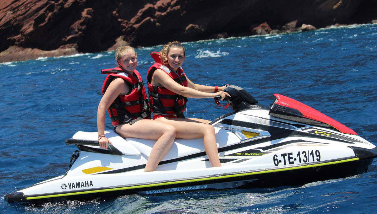 À l’heure de votre choix, nous nous retrouverons au port de San Miguel, où vous attendront les jet-skis. Avant de les enfourcher, vous recevrez de brèves explications sur leur utilisation. Il n’est pas nécessaire d’avoir déjà pratiqué.