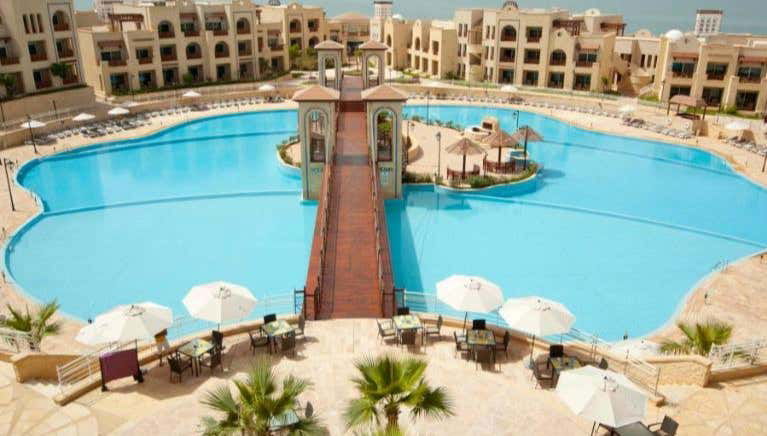 Il biglietto vi darà accesso alle piscine dell'hotel, ai bar, al parco giochi e al club sulla spiaggia: potrete godere del Mar Morto da questa zona privata e rilassarvi nelle sue acque ricche di minerali. Inoltre, potrete approfittare del bagno per spalmarvi un po' di fango, noto per le sue proprietà salutari.