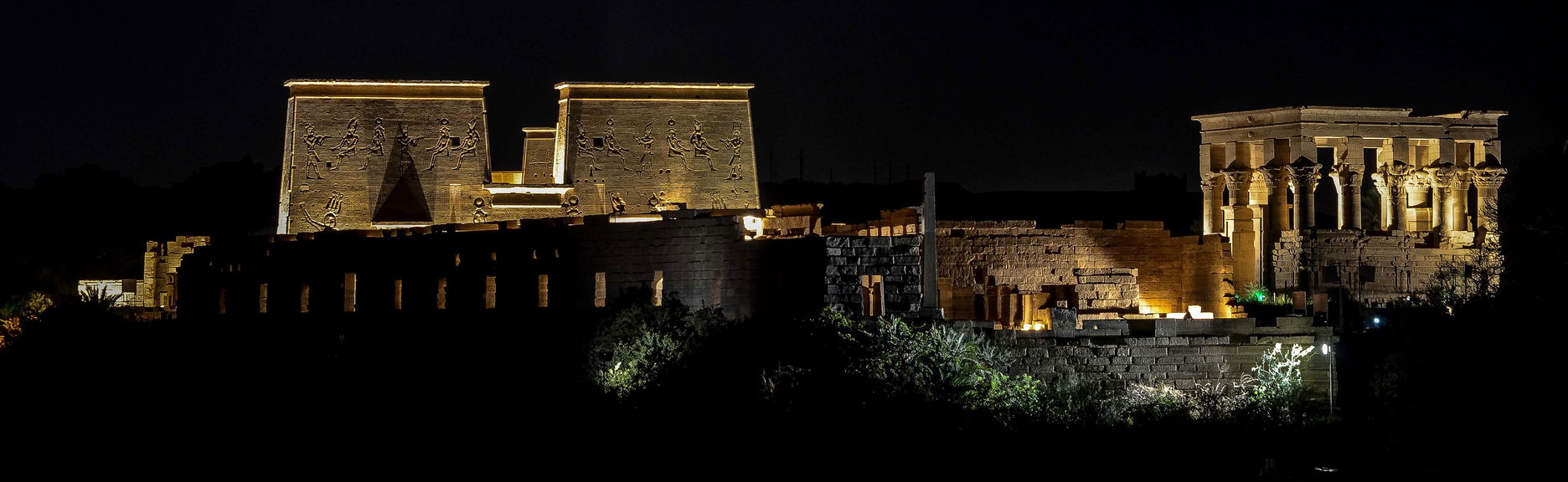Visiteremo i Templi di File accompagnati dalla dea Iside e dal dio Osiride, che narreranno la loro storia d'amore e tragedia. La visita durerà per due ore e mezza, durante le quali le pareti del tempio prenderanno vita con uno spettacolo di luci. Un'esperienza unica!
