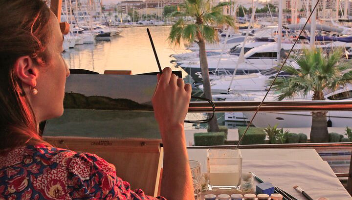 Goditi un'esperienza unica dipingendo e degustando durante lo speciale tramonto di fronte al mare. Potrai dipingere un quadro grazie a semplici tecniche pittoriche basate su strati di colore. Il dottorato Il professore di belle arti ti guiderà a fare del tuo meglio.