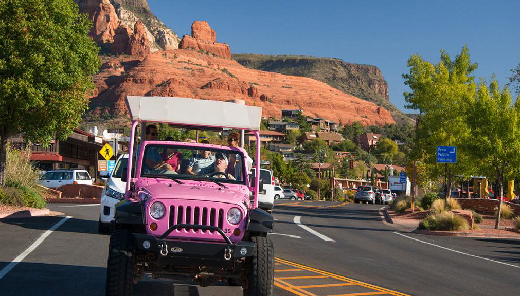 Il tuo viaggio inizia al Pink Adventure Plaza nella Uptown Sedona. Dopo una rapida introduzione, salirai a bordo di una Jeep® Wrangler scoperta, progettata per offrirti un'esperienza coinvolgente con viste senza ostacoli. Questo veicolo personalizzato sarà guidato dalla tua Guida interprete certificata, che ti accompagnerà in un tour di due ore della zona.