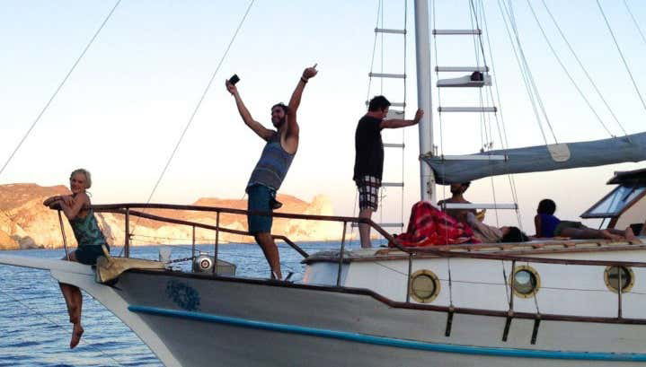 Scoprite la Caldera di Santorini navigando su una tradizionale imbarcazione e immergetevi nelle splendide acque che circondano l'isola. L’esperienza include un pranzo o una cena!. Modalità.