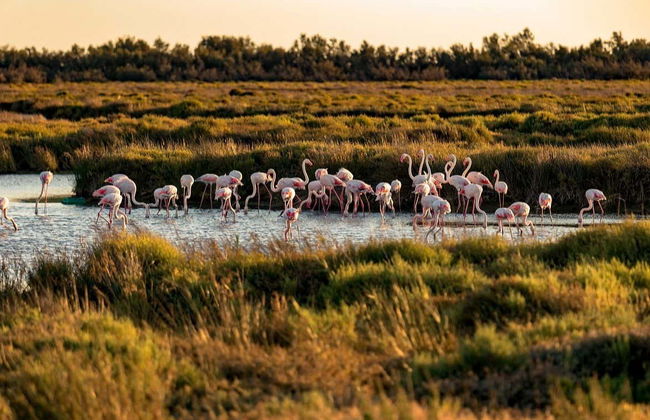 In quest'escursione alla Camargue, Saintes Maries de la Mer e Aigues-Mortes visiteremo una laguna rosa, una città fortificata e una torre di vedetta. Itinerario. Ci troveremo all'orario indicato al Centro Commerciale Oddysseum di Montpellier.