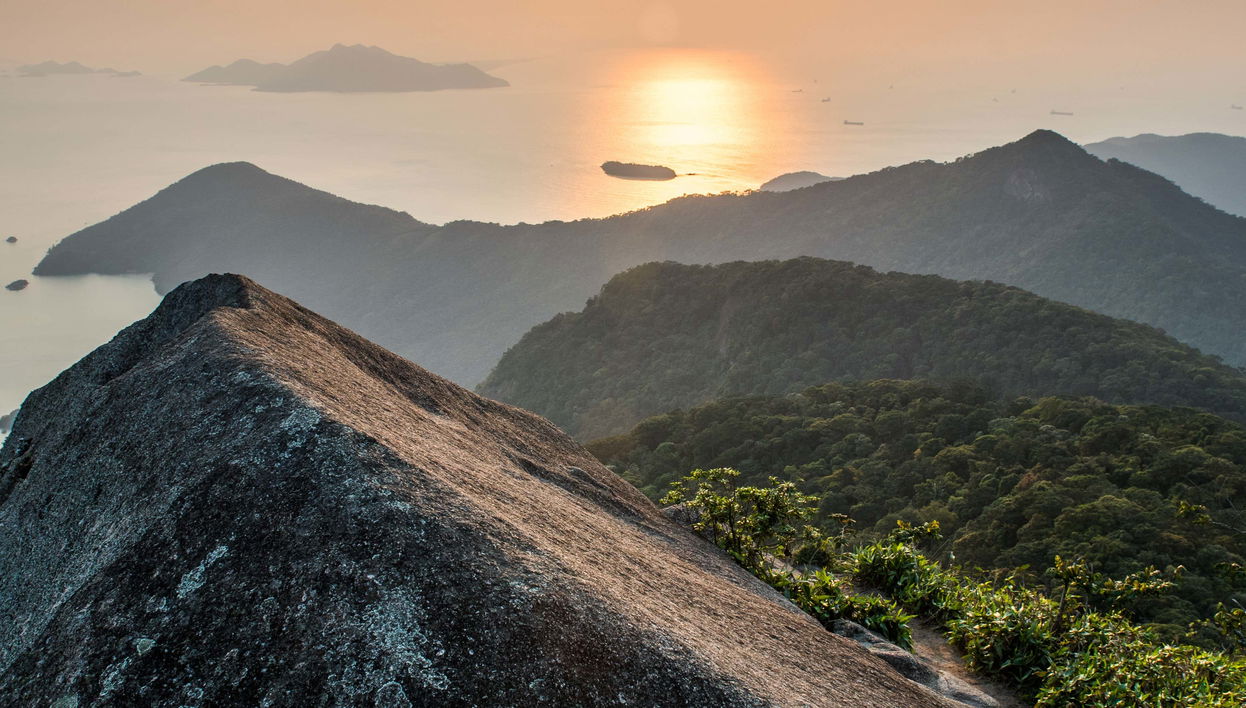 Nesta trilha ao amanhecer no Pico do Papagaio, subiremos ao topo dessa formação rochosa e desfrutaremos de vistas de Ilha Grande.