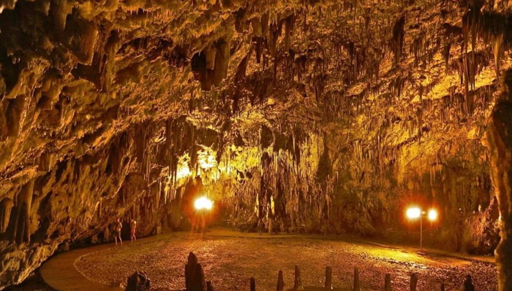 Gruta de Drogarati A Gruta de Drogarati é uma atração imperdível de Kefalonia. É considerada uma das melhores grutas da Grécia e é a única com uma sala tão grande com estalactites e estalagmites.