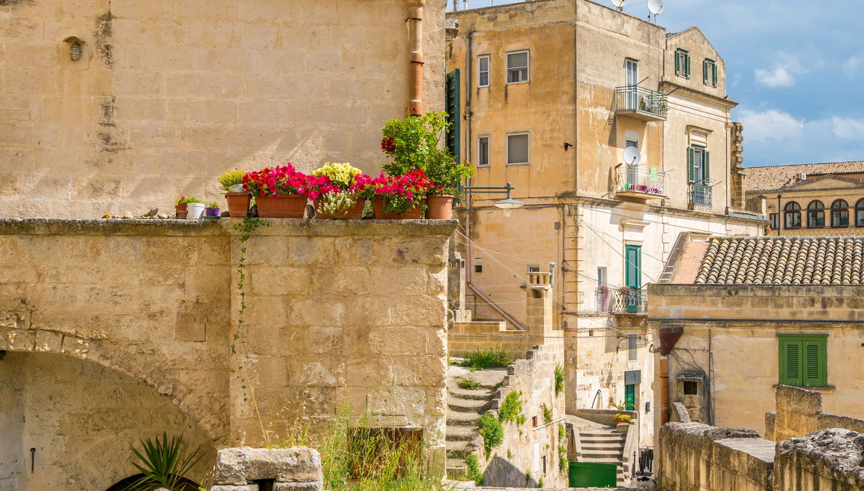 A cidade de Matera possui casas-gruta da pré-história e dois distritos conhecidos como Sassi. Estaremos explorando as ruas de pedra sinuosas e apreciando as vistas das colinas de Murgia.