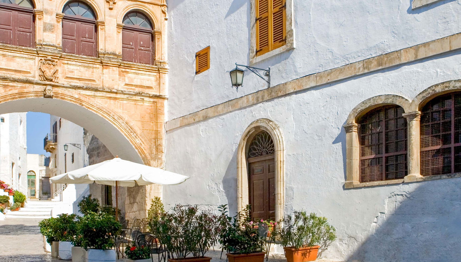 Seguiremos para Cisternino, uma cidade localizada no topo de uma colina. Suas casas brancas e a vegetação ao redor criam um cenário memorável. Cisternino é uma das 100 cidades mais bonitas da Itália e oferece impressionantes vistas do vale de Itria.