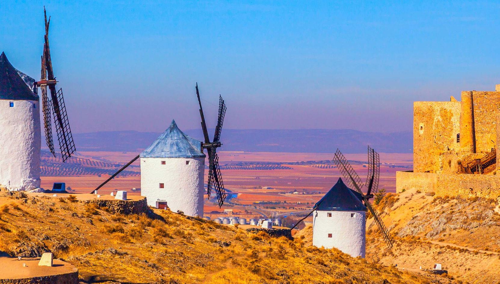 Conheça os famosos moinhos de vento de Consuegra e o castelo de La Muela com esta visita guiada. Explore a paisagem de Castilla La Mancha. Itinerário.