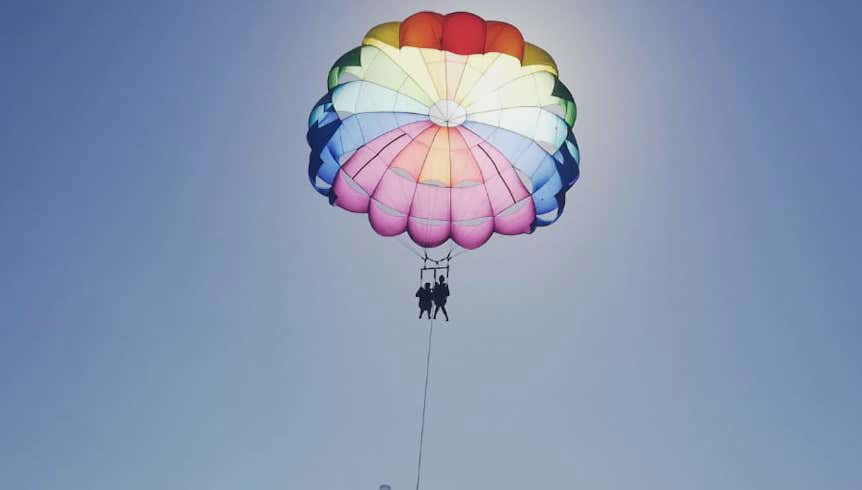 Nesta experiência de parasailing em Denia, você vai voar por 10 minutos sobre as águas do mar Mediterrâneo.